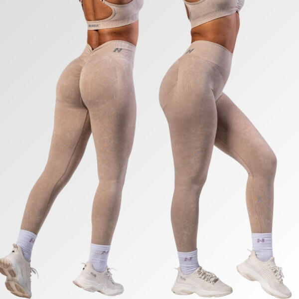 NEBBIA - Varrásmentes magas derekú leggings MAXIMUM PUSH-UP 302 (cream) (XS) - NEBBIA
