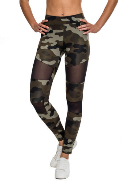 Ez a női terepszínű leggings tökéletes tapadást és kényelmes viselést biztosít. Rugalmas derékrésszel és áttetsző sávokkal rendelkezik. Alkalmas mindennapi viseletre és sporttevékenységekre. Anyaga kellemes tapintású és nedvességet elvezető.